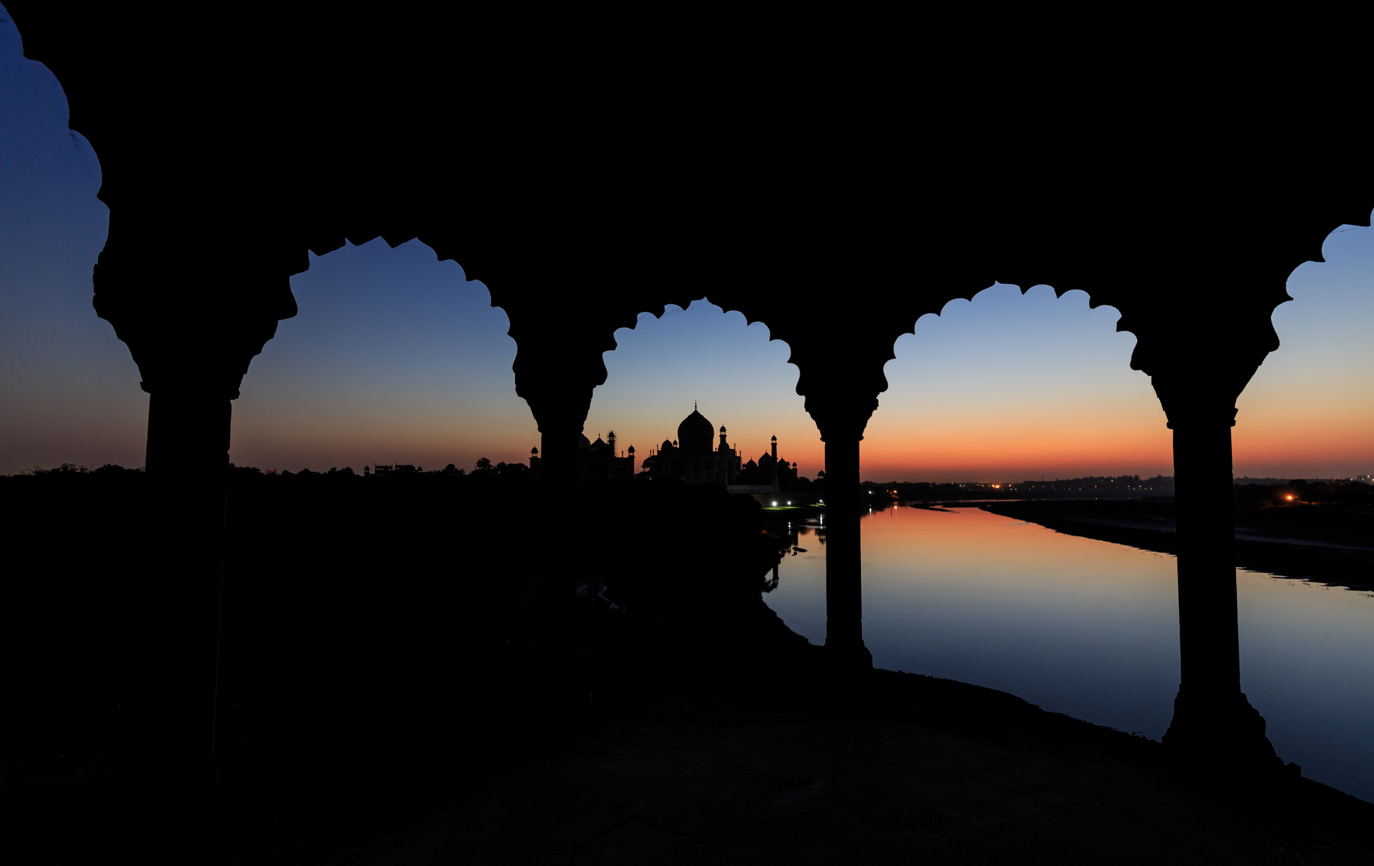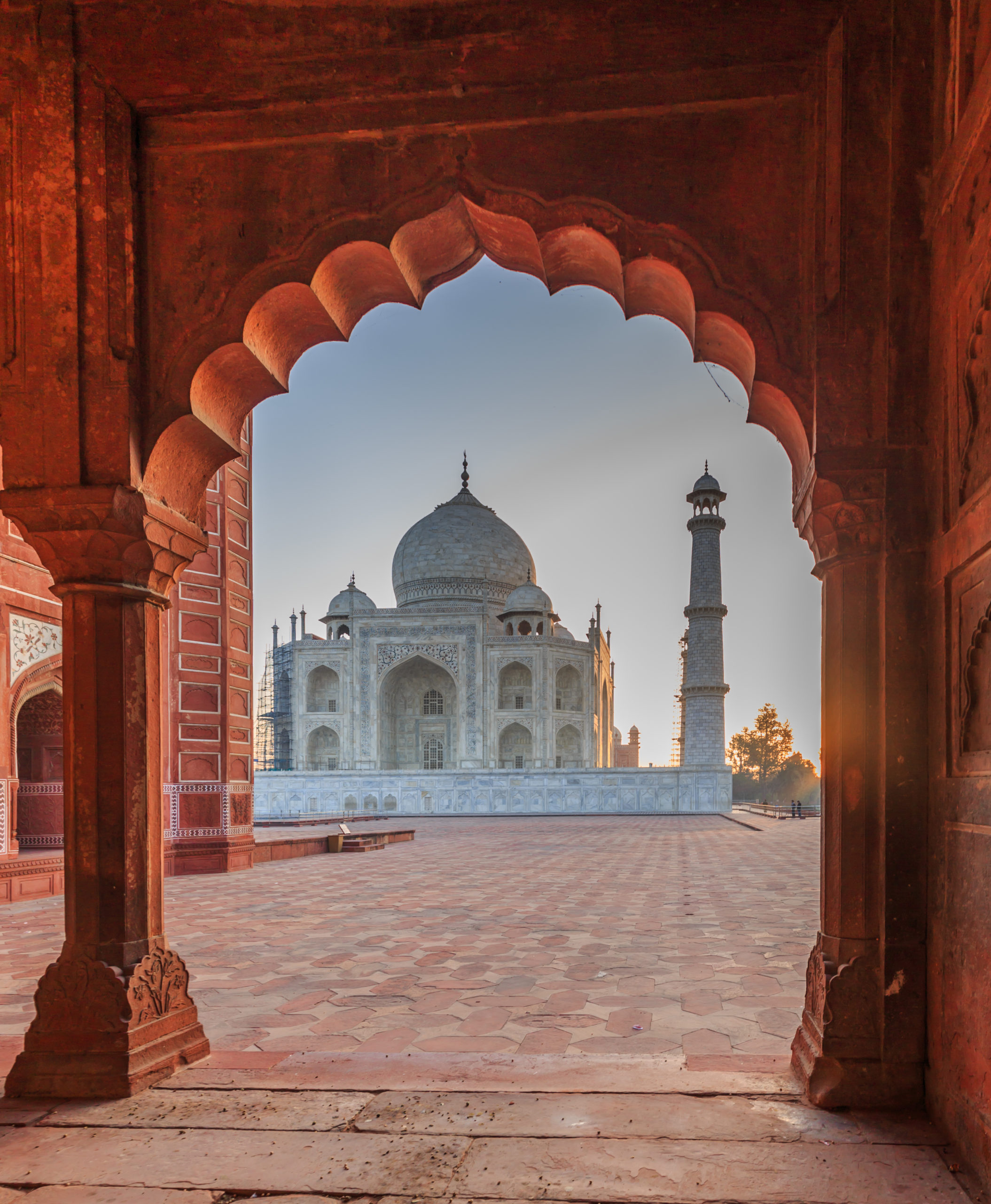 We woke up around 4:30am to meet Harsh at the entrance of the hotel. A twenty minute walk to the entrance of Taj Mahal and we were the first ones there. The police at the entrance were quite chatty and friendly. They scanned our passes very quickly as the queue behind us grew. The gates were opened at 6am and we rushed through to find strategic spots for a perfect frame. We must have walked around hundred meters or so and we came around the bend and there was the Taj Mahal in all its glory an grandeur. As a photographer the intention is always to be on time, frame and shoot and never miss the opportunity. However, in this instance it took me a good few minutes to pull myself back into the present. The sheer opulence and grandeur of the building, it’s perfect structure and balance and equilibrium and harmony with its surroundings.