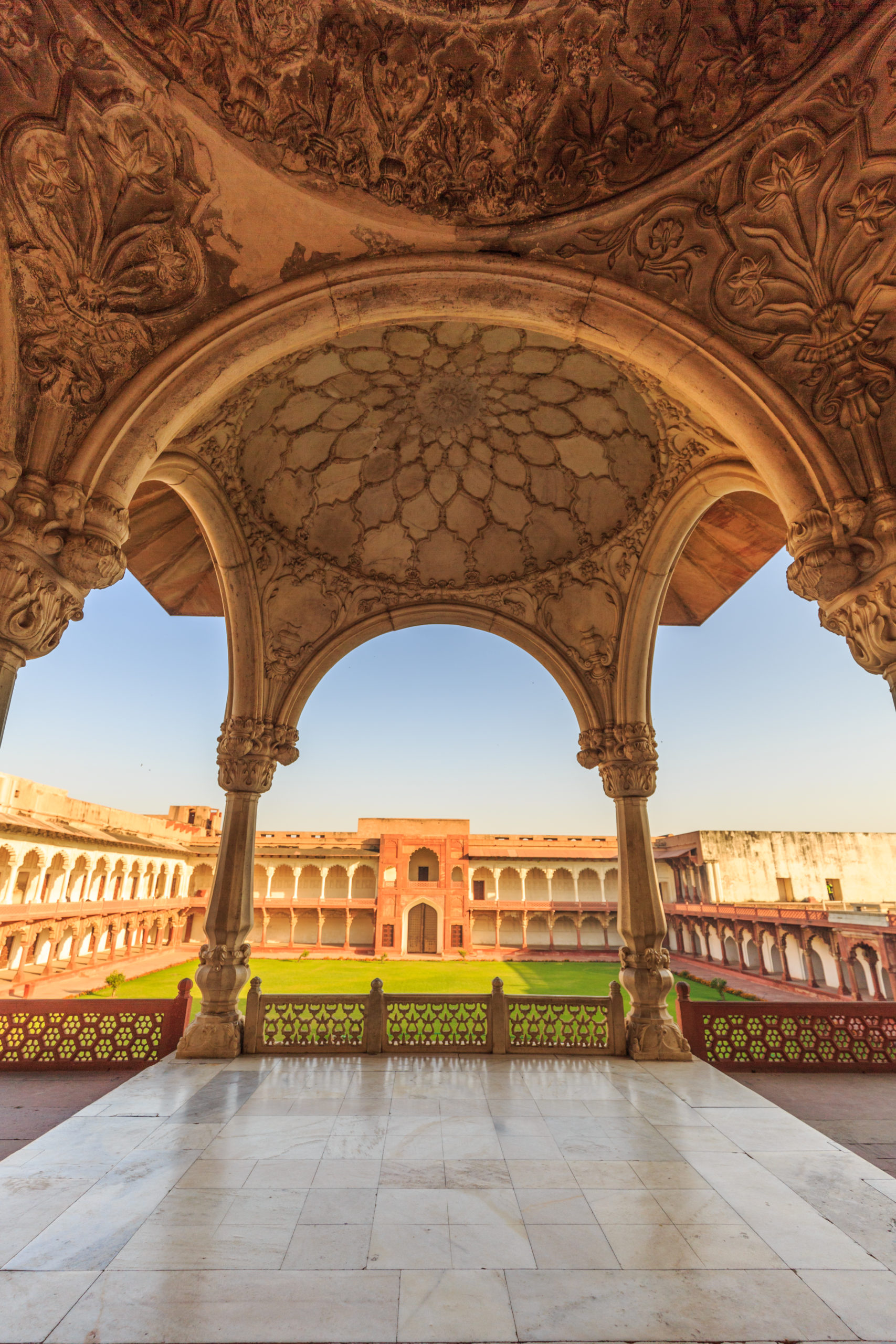 We spent a few hours there and then proceeded to the last major stop of this trip, Agra Fort.  This fort was the main residence of the Mughal emperors till 1638. Spread over 98Acres it’s a great example of Islamic architecture in red sand stone and subsequently Shah Jahan added structures in White marble.